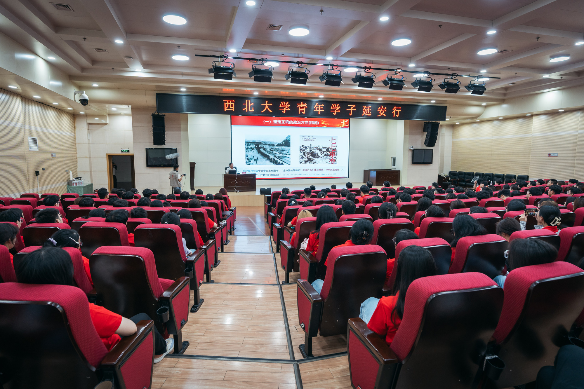 在延安大学,首批到达的学子认真聆听“弘扬延安精神,争做 ‘有理想、敢担当、能吃苦、肯奋斗’ 的新时代好青年”主题报告。