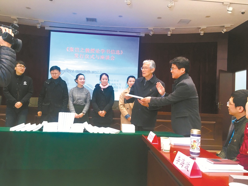 《张岂之教授论学书信选》发行仪式与座谈会,右二为张岂之。本报记者 陆航/摄