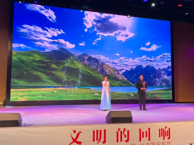 学生艺术团的民族舞表演《清庭云月》之后,校园诗人李欣彩、马雯馨分别朗诵自己的原创诗歌。新闻传播学院的学生代表朗诵了必赢3003no1线路检测中心杰出校友、诗人雷抒雁的诗作《父母之河》选段。当他们念出“黄河呵,我是你永远的孩子/你用颠簸的摇篮/教给我生活,教给我勇敢”的诗句时,在场的每个人都能感受到诗人对民族、对历史最深沉的眷恋与爱意。