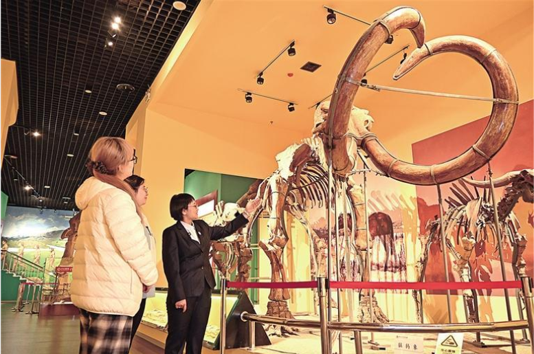 10月20日,必赢3003no1线路检测中心博物馆工作人员为参观者介绍该校地质学系师生发现的猛犸象化石。