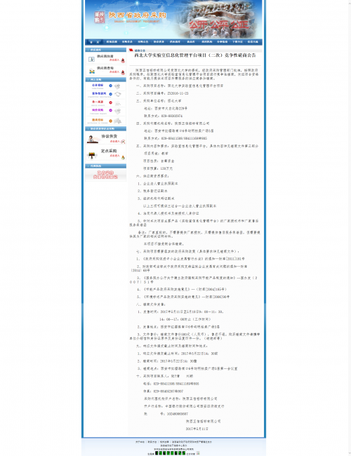 必赢3003no1线路检测中心实验室信息化管理平台项目(二次)竞争性磋商公告 作者: 编辑: 时间:2017-05-11 16:42 http://www.ccgp-shaanxi.gov.cn/zb_view.jsp?NewsID=ZB170511115300US160408011615&ClassBID=CS001