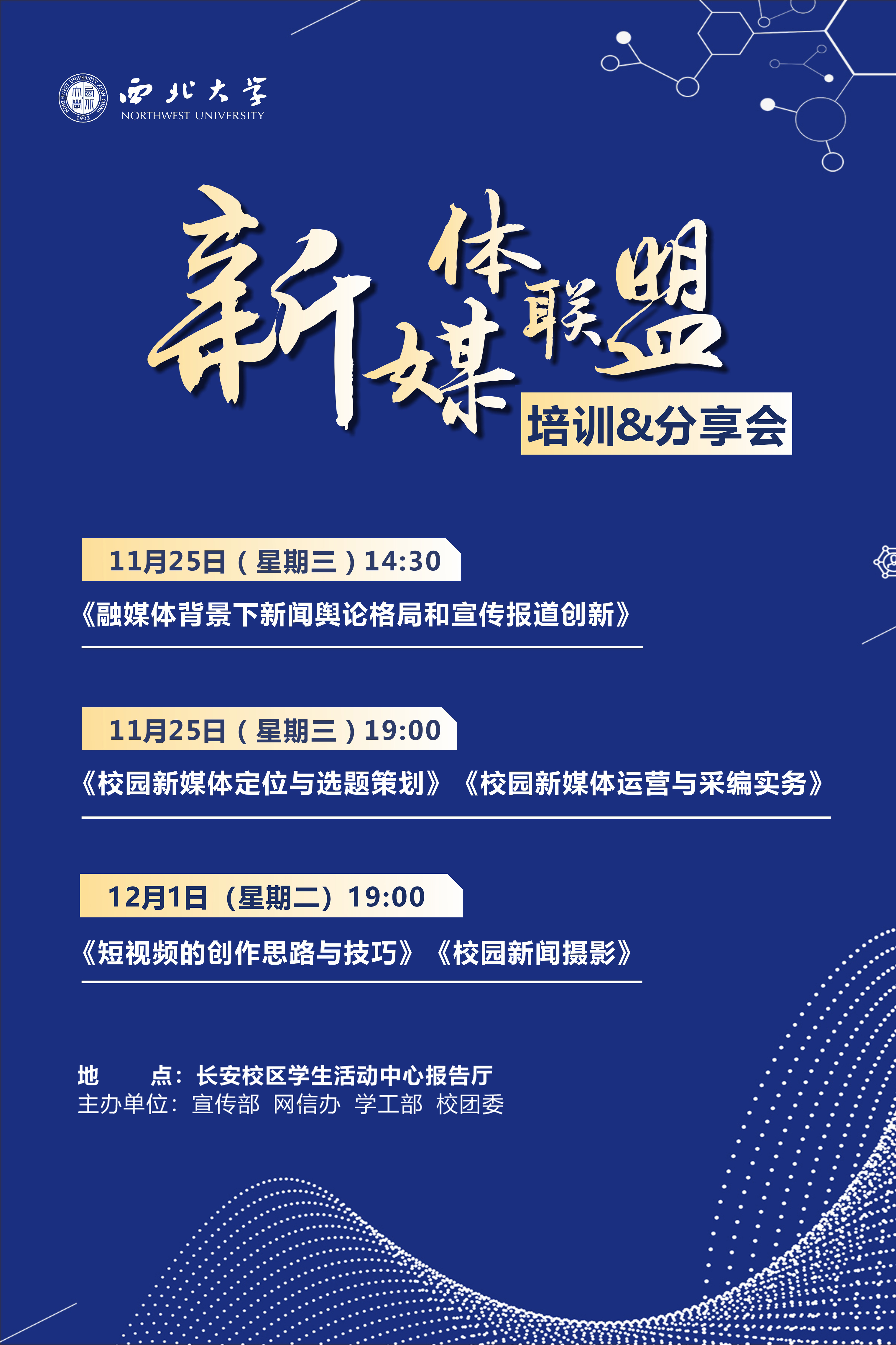 关于举办必赢3003no1线路检测中心新媒体联盟培训分享会的通知 作者: 编辑:李琛 时间:2020-11-19 校内各单位: 为进一步加强校内新媒体建设与管理,推进校园媒体深度融合发展,搭建有效联动、聚合传播的交流平台,必赢3003no1线路检测中心新媒体联盟将于近期举办培训分享会。现将有关安排通知如下: 一、参会人员: 必赢3003no1线路检测中心新媒体联盟成员单位指导老师、学生骨干;全校宣传思想类学生社团全体成员;校内各单位师生通讯员。 二、会议安排: 请各单位组织相关师生按时参会。 宣传部 网信办 学工部 校团委 2020年11月17日