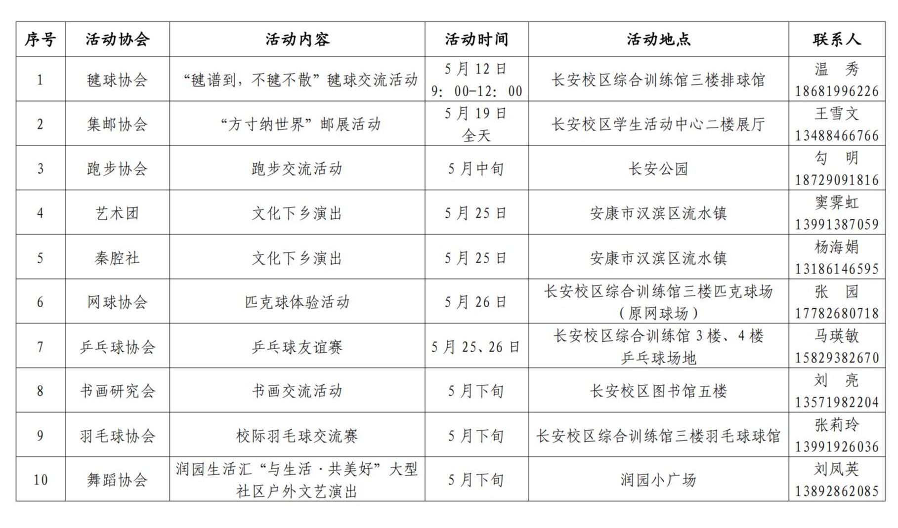 关于举办2024年教职工协会活动月的通知 作者:校工会 编辑: 时间:2024-05-09 各基层分会: 为了发挥教职工协会在推进校园文化建设、丰富教职工业余生活、促进教职工身心健康、凝聚和团结教职工等方面的作用,校工会决定于2024年5月份举办“必赢3003no1线路检测中心教职工协会活动月”,各教职工协会将开展丰富多彩的文体活动。欢迎广大教职工参加或前往观看。 具体活动安排如下: 联系人:田霖 联系电话:88302521 校工会 2024年5月9日