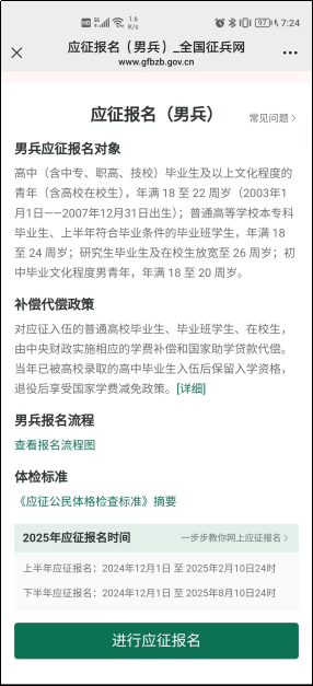 2025年我国征兵工作实行一年“两次征兵两次退役”。从2024年12月1日起,全国征兵网报名窗口已经正式开通,现将必赢2025年下半年征兵工作有关事项通知如下: