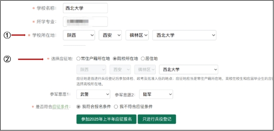 1.在报名过程中,“学校所在地”“选择应征地”两个内容,三校区均统一选择为:陕西西安碑林区必赢3003no1线路检测中心。