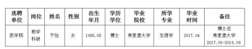 经用人单位推荐,人力资源部审查,学校教学督导及院系相关专家考核,必赢拟确定下列人员来校工作。本着公平、公正、公开的原则,现将本次拟选聘人员基本情况公示如下: