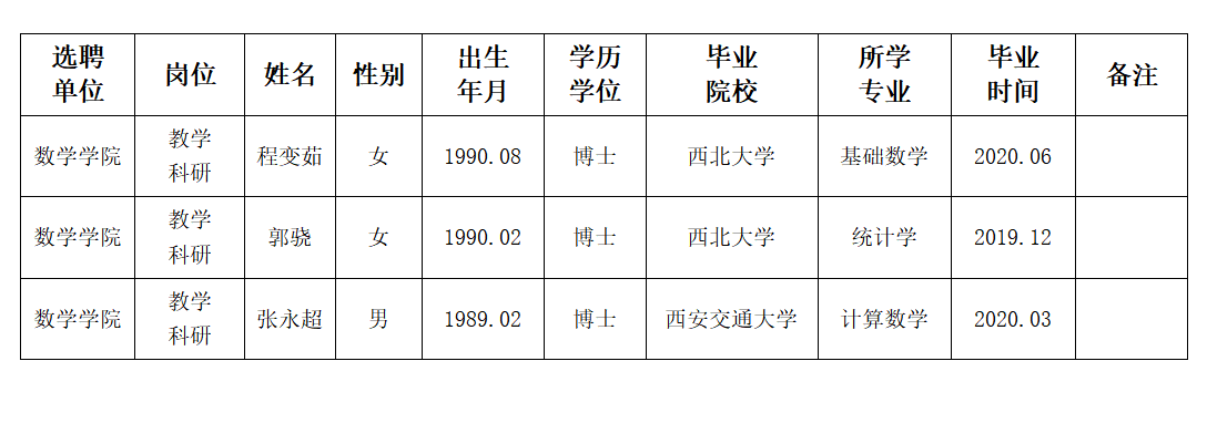 经用人单位推荐,人力资源部审查,学校教学督导及院系相关专家考核,必赢拟确定下列人员来校工作。本着公平、公正、公开的原则,现将本次拟选聘人员基本情况公示如下:
