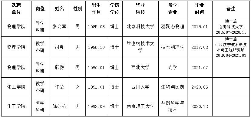 经用人单位推荐,人力资源部审查,学校教学督导及院系相关专家考核,必赢拟确定下列人员来校工作。本着公平、公正、公开的原则,现将本次拟选聘人员基本情况公示如下: