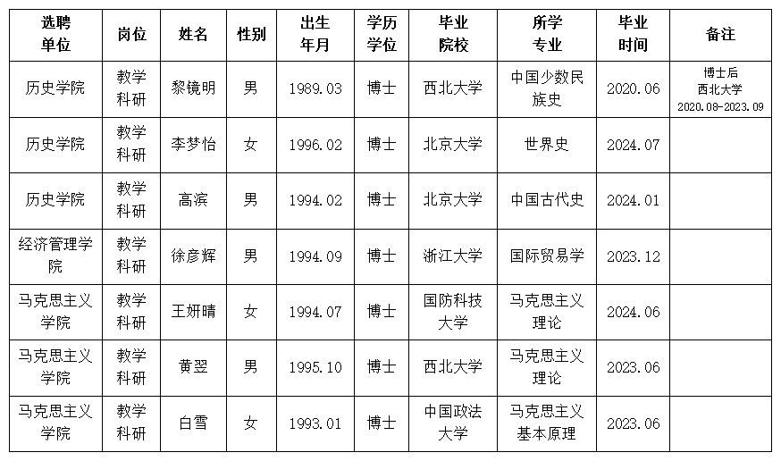 经用人单位推荐,人力资源部审查,学校教学督导及院系相关专家考核,必赢拟确定下列人员来校工作。本着公平、公正、公开的原则,现将本次拟选聘人员基本情况公示如下: