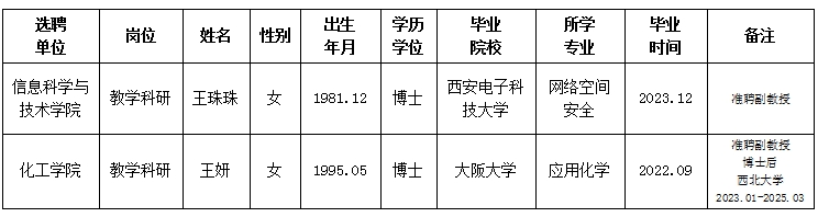 关于教学科研单位选聘教师情况的公示