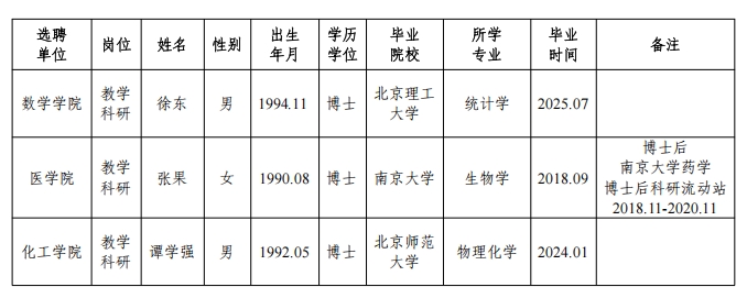 经资格审查,用人单位考查,学校专家评审会审议,必赢拟确定下列人员来校工作,聘任方式为参编选聘。本着公平、公正、公开的原则,现将本次拟选聘人员基本情况公示如下: