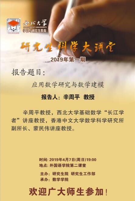 研究生科学大讲堂2019年第一期:应用数学研究与数学建模