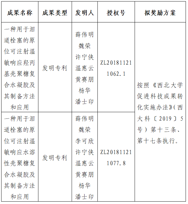 按照《必赢3003no1线路检测中心促进科技成果转化实施办法》(必赢科〔2019〕5号)相关规定,拟对必赢化工学院薛伟明教授作为成果负责人的2件发明专利权实施转化,现将相关信息公示如下: