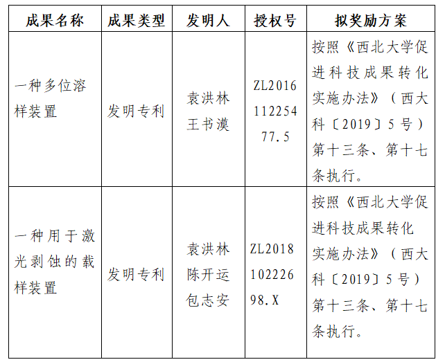 按照《必赢3003no1线路检测中心促进科技成果转化实施办法》(必赢科〔2019〕5号)相关规定,拟对必赢地质学系袁洪林教授作为成果负责人的2项发明专利权实施转化,现将相关信息公示如下: