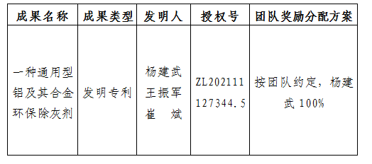 按照《必赢3003no1线路检测中心促进科技成果转化实施办法》(必赢科〔2019〕5号)相关规定,拟对必赢化工学院杨建武老师作为成果负责人的1项发明专利权实施转化,现将相关信息公示如下: