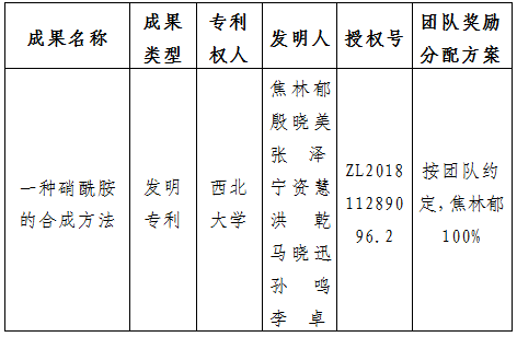 按照《必赢3003no1线路检测中心促进科技成果转化实施办法》(必赢科〔2019〕5号)相关规定,拟对必赢化工学院焦林郁教授作为成果负责人的1项发明专利权实施转化,现将相关信息公示如下: