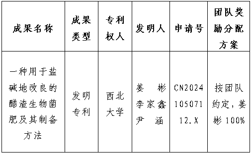 该发明公开了一种用于盐碱地改良的醋渣生物菌肥及其制备方法,属于生物菌肥技术领域。该发明为醋渣的高效利用提供了新的途径,为改良盐碱土壤提供了一种低成本、高效能、可持续的方法。