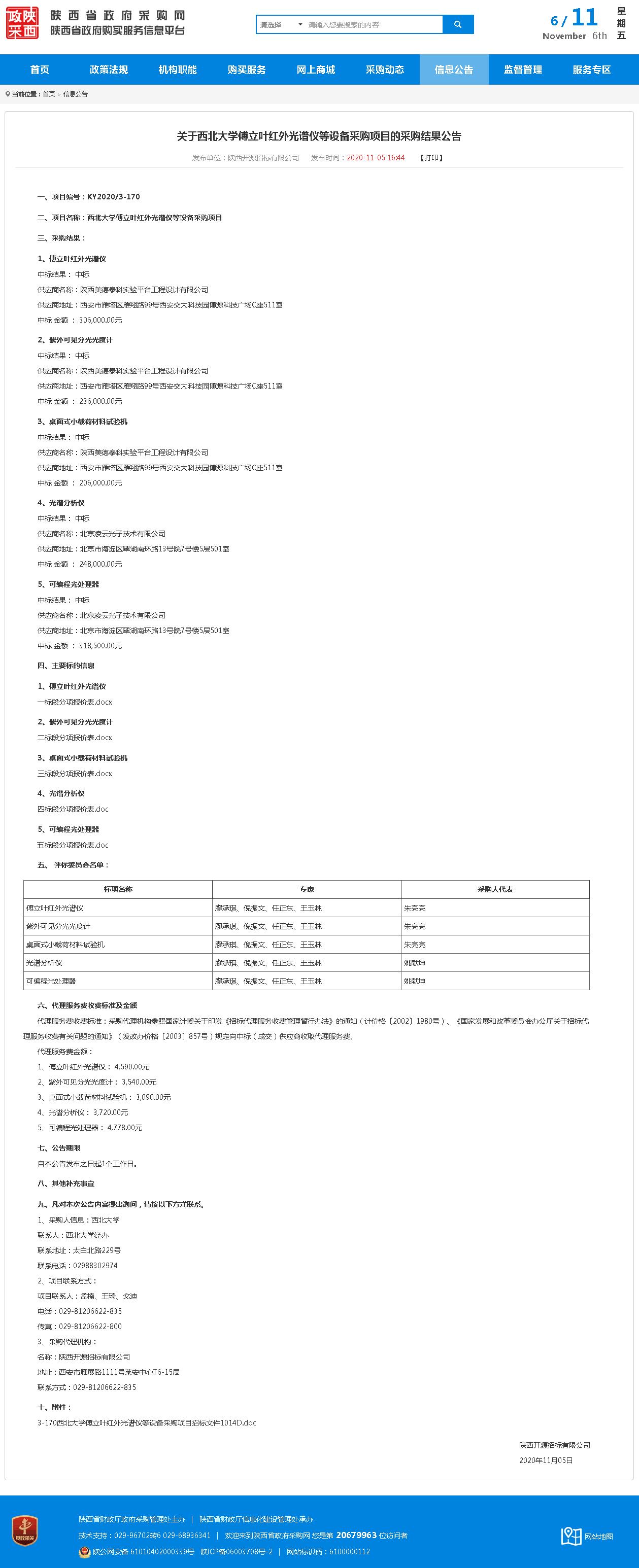 关于必赢3003no1线路检测中心傅立叶红外光谱仪等设备采购项目的采购结果公告