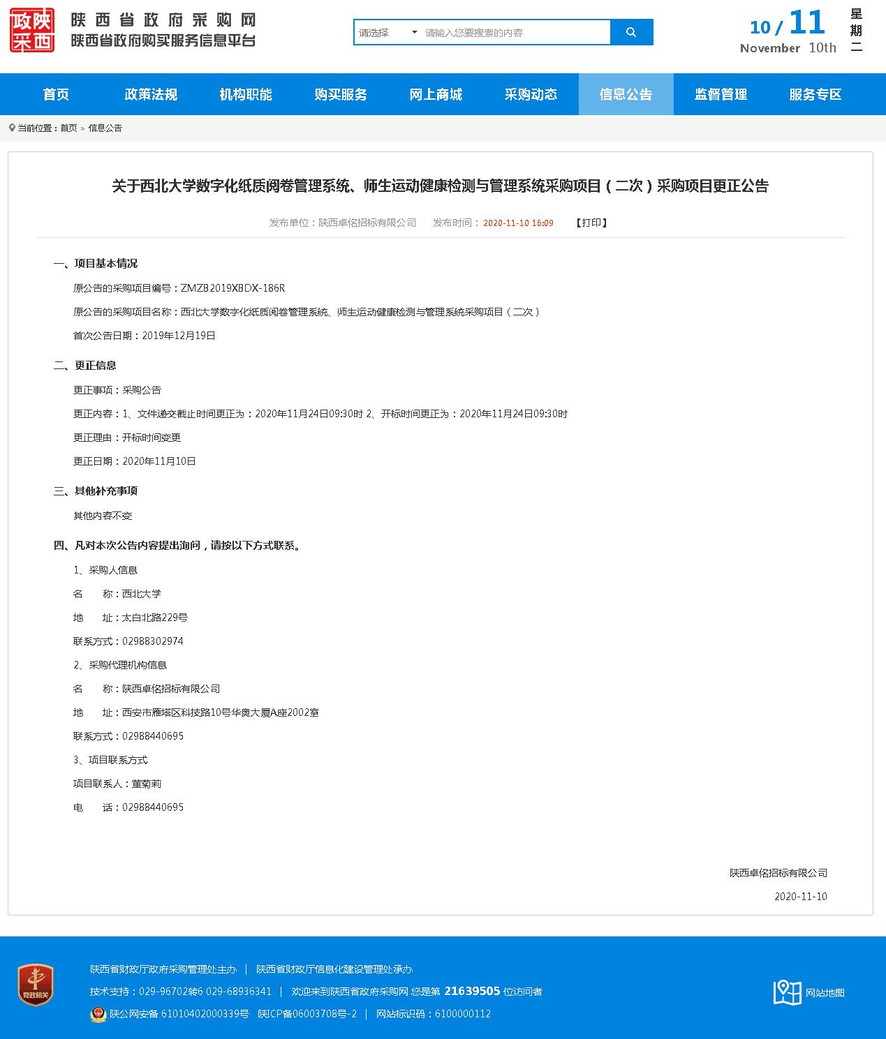 必赢3003no1线路检测中心数字化纸质阅卷管理系统、师生运动健康检测与管理系统采购项目(二次)采购项目更正公告