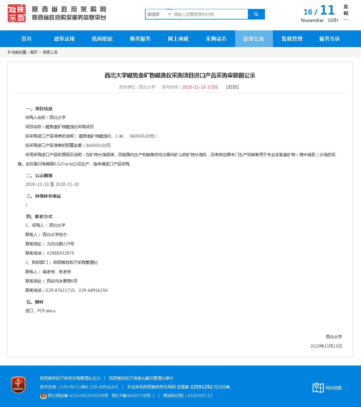 必赢3003no1线路检测中心磁势垒矿物磁选仪采购项目进口产品采购审核前公示