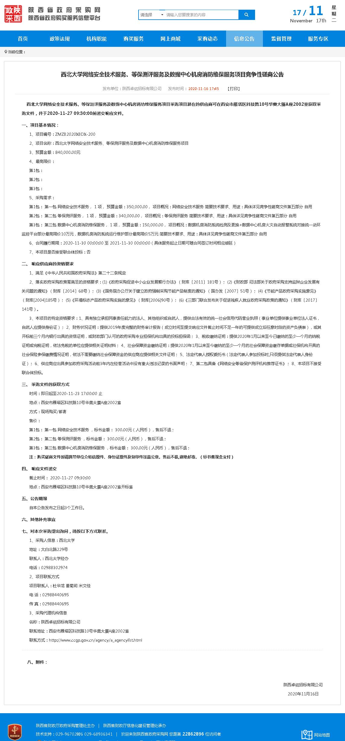 必赢3003no1线路检测中心网络安全技术服务、等保测评服务及数据中心机房消防维保服务项目竞争性磋商公告