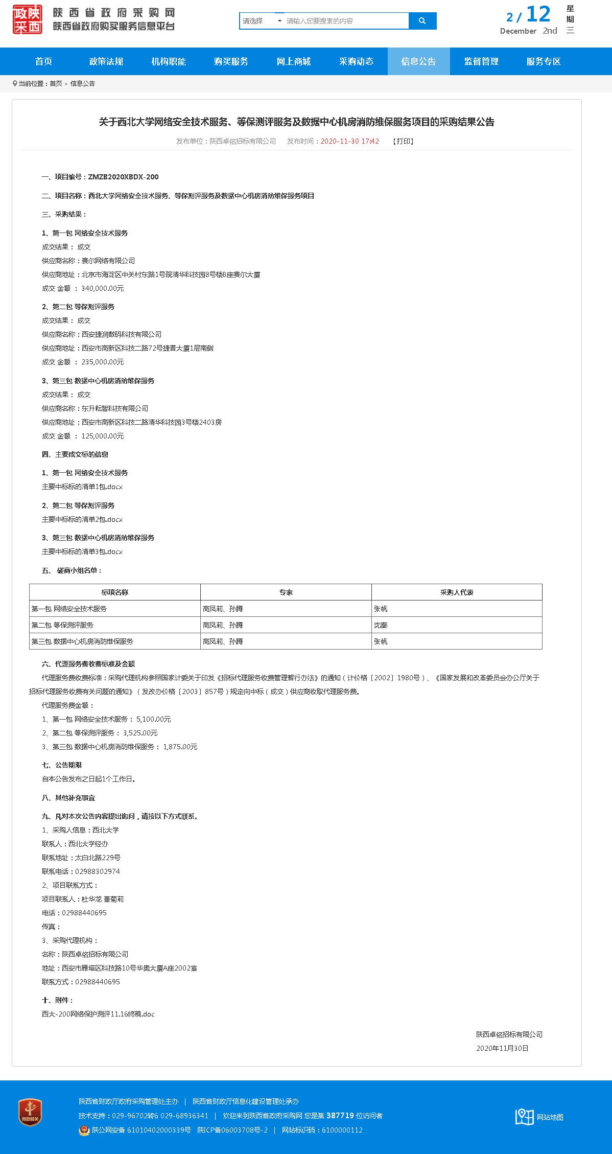 必赢3003no1线路检测中心网络安全技术服务、等保测评服务及数据中心机房消防维保服务项目的采购结果公告