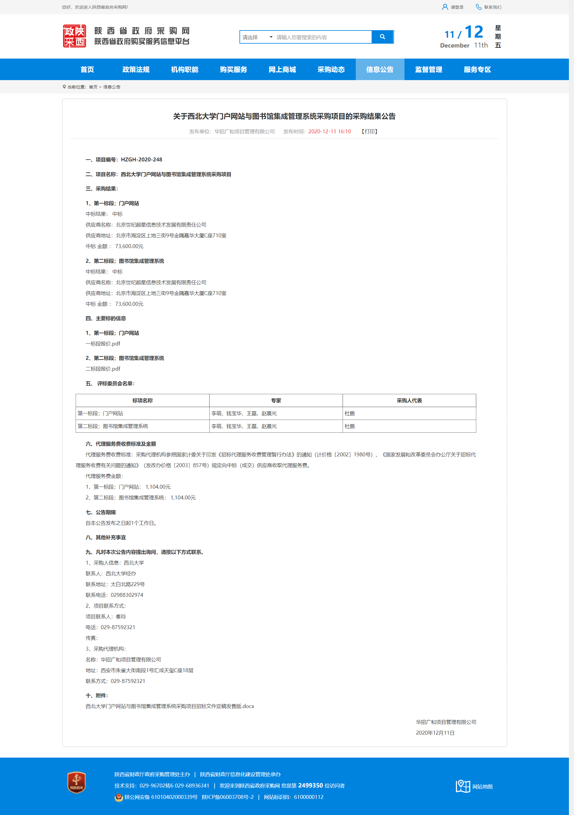 关于必赢3003no1线路检测中心门户网站与图书馆集成管理系统采购项目的采购结果公告 作者: 编辑:薛利娟 时间:2020-12-11 原公告地址:http://www.ccgp-shaanxi.gov.cn/notice/noticeDetail.do?noticeguid=8a85be3275d5d5c2017650d7c2df14aa