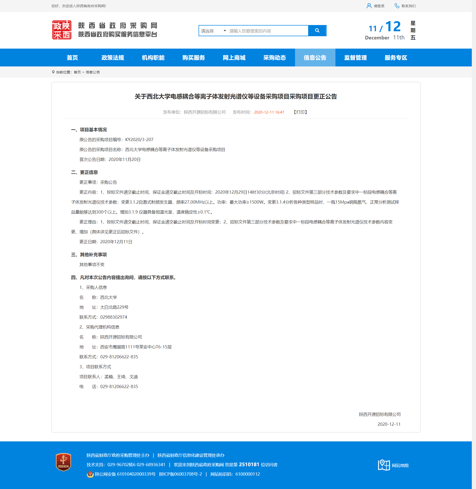 关于必赢3003no1线路检测中心电感耦合等离子体发射光谱仪等设备采购项目采购项目更正公告 作者: 编辑:薛利娟 时间:2020-12-11 原公告地址:http://www.ccgp-shaanxi.gov.cn/notice/noticeDetail.do?noticeguid=8a85be3375d5d589017650e8e44672f0