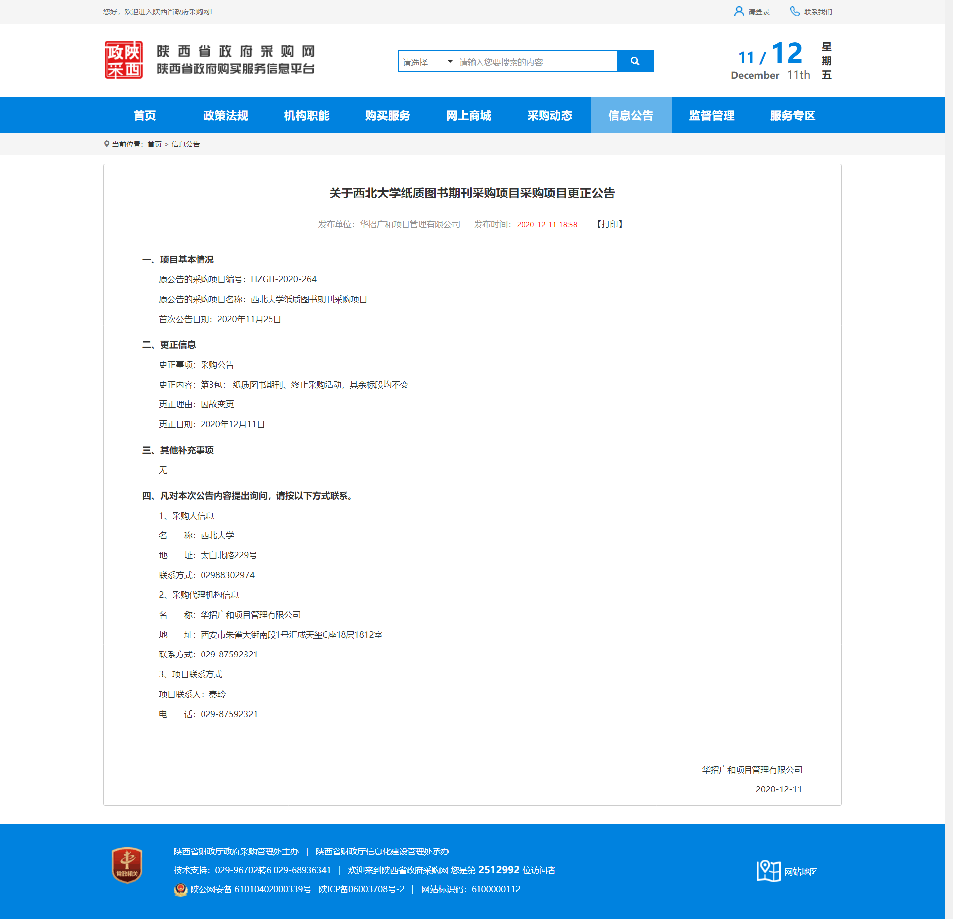 关于必赢3003no1线路检测中心纸质图书期刊采购项目采购项目更正公告 作者: 编辑:薛利娟 时间:2020-12-11 原公告地址:http://www.ccgp-shaanxi.gov.cn/notice/noticeDetail.do?noticeguid=8a85be3475d5d52d017641b1340e7790