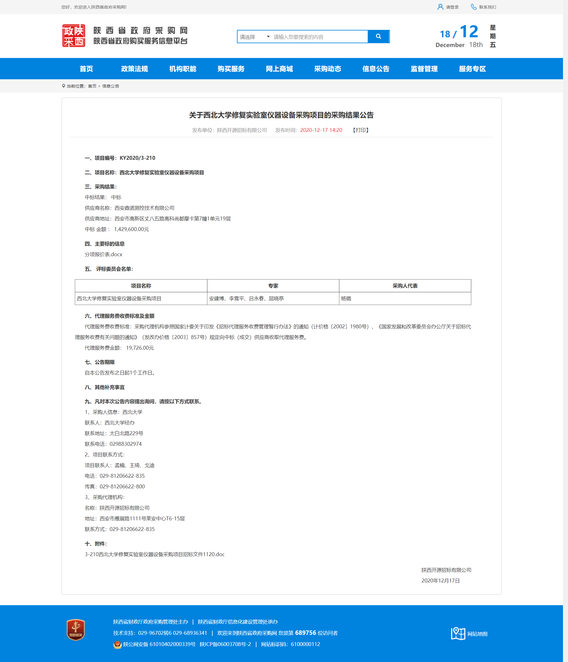 关于必赢3003no1线路检测中心修复实验室仪器设备采购项目的采购结果公告 作者: 编辑:薛利娟 时间:2020-12-18 原公告地址:http://www.ccgp-shaanxi.gov.cn/notice/noticeDetail.do?noticeguid=8a85be34765f9eac01766f3cbcd749f6