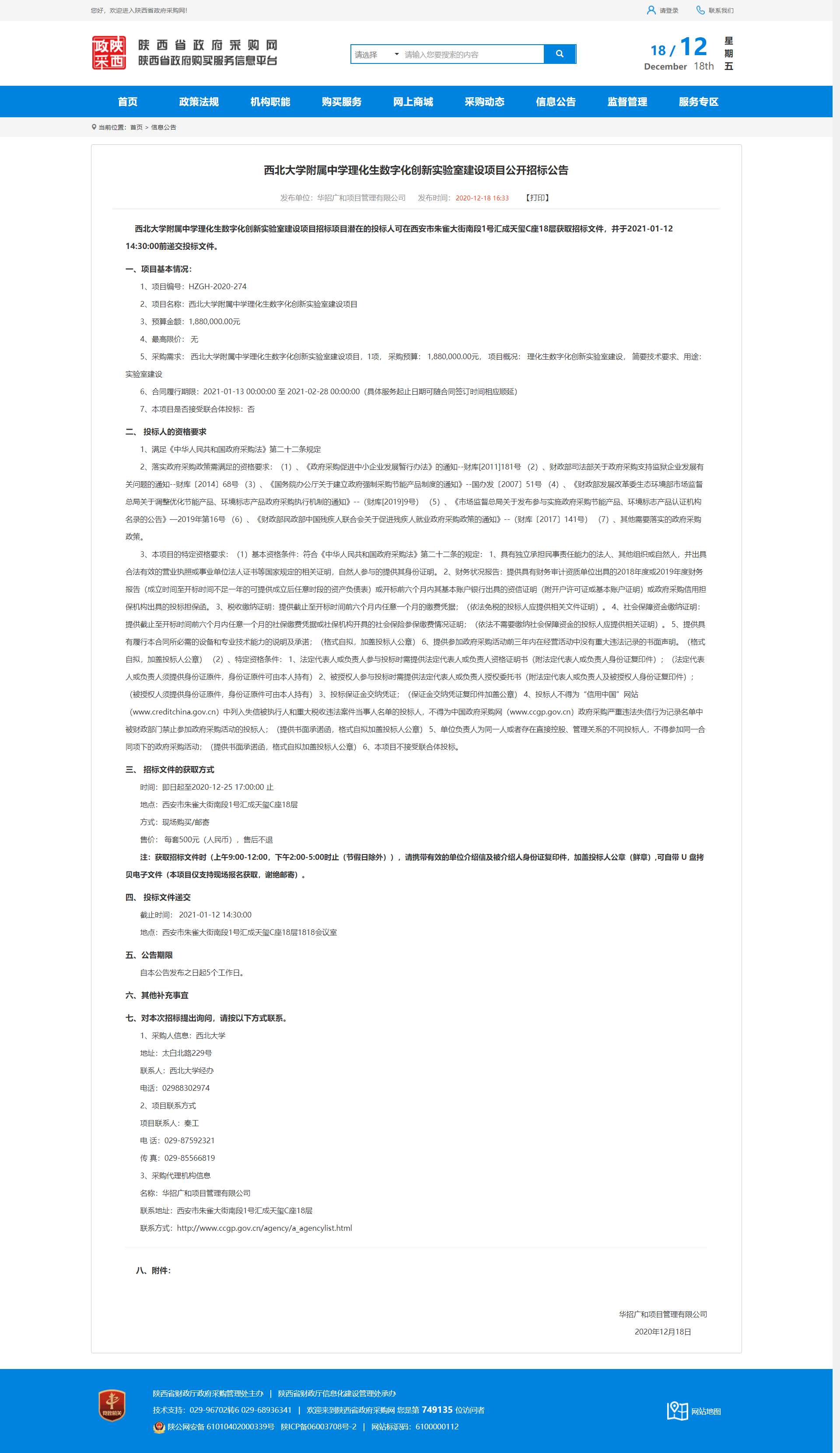 必赢3003no1线路检测中心附属中学理化生数字化创新实验室建设项目公开招标公告 作者: 编辑:薛利娟 时间:2020-12-18 原公告地址:http://www.ccgp-shaanxi.gov.cn/notice/noticeDetail.do?noticeguid=8a85be32765f9c9b017674de4e727a0f