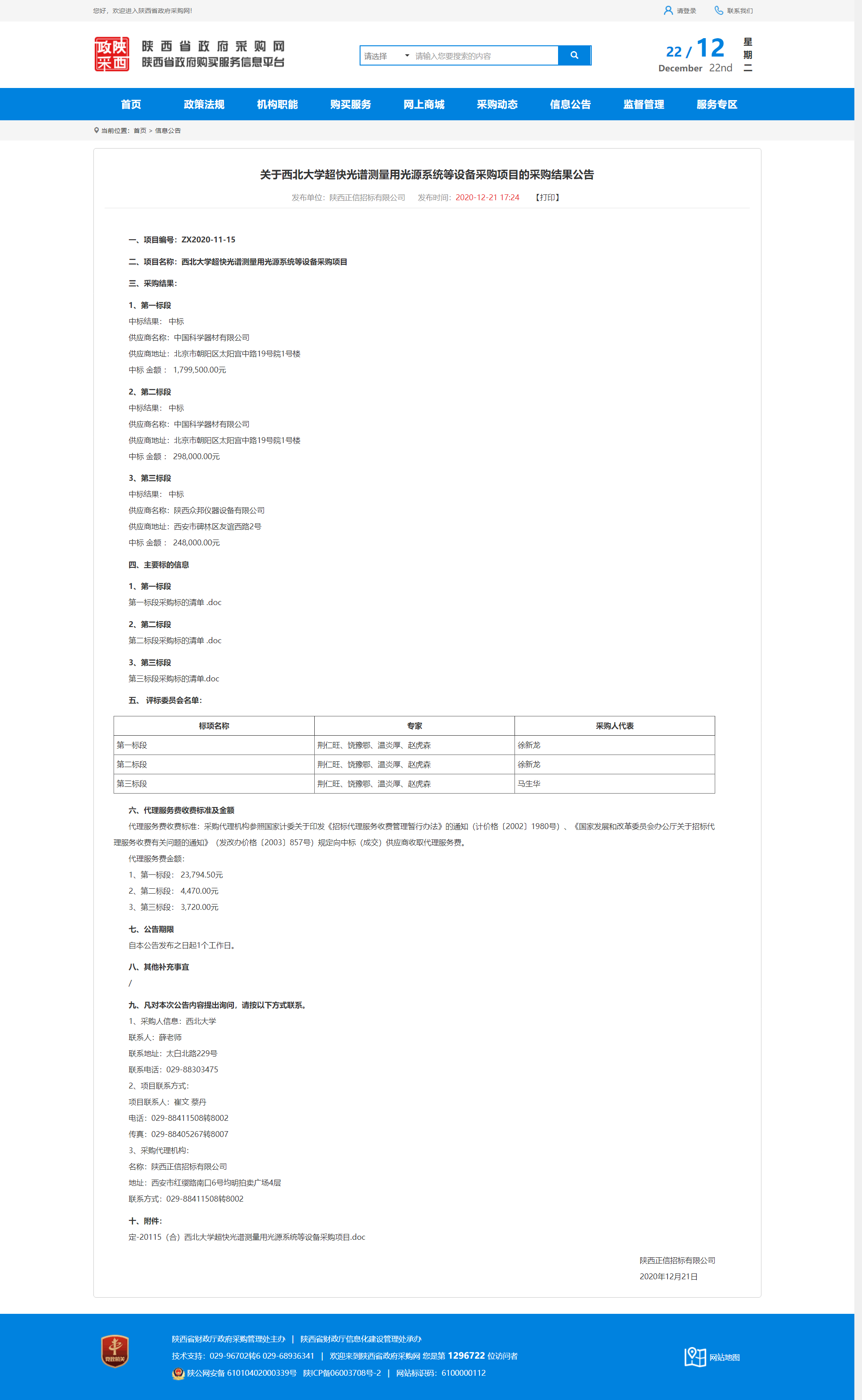 关于必赢3003no1线路检测中心超快光谱测量用光源系统等设备采购项目的采购结果公告 作者: 编辑:薛利娟 时间:2020-12-22 原公告地址:http://www.ccgp-shaanxi.gov.cn/notice/noticeDetail.do?noticeguid=8a85be33765f9dd001768497df5d65ae