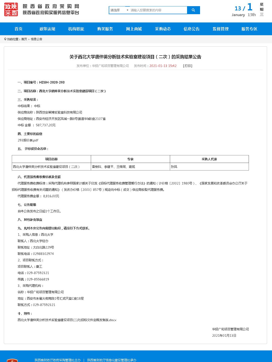 关于必赢3003no1线路检测中心唐仲英分析技术实验室建设项目(二次)的采购结果公告