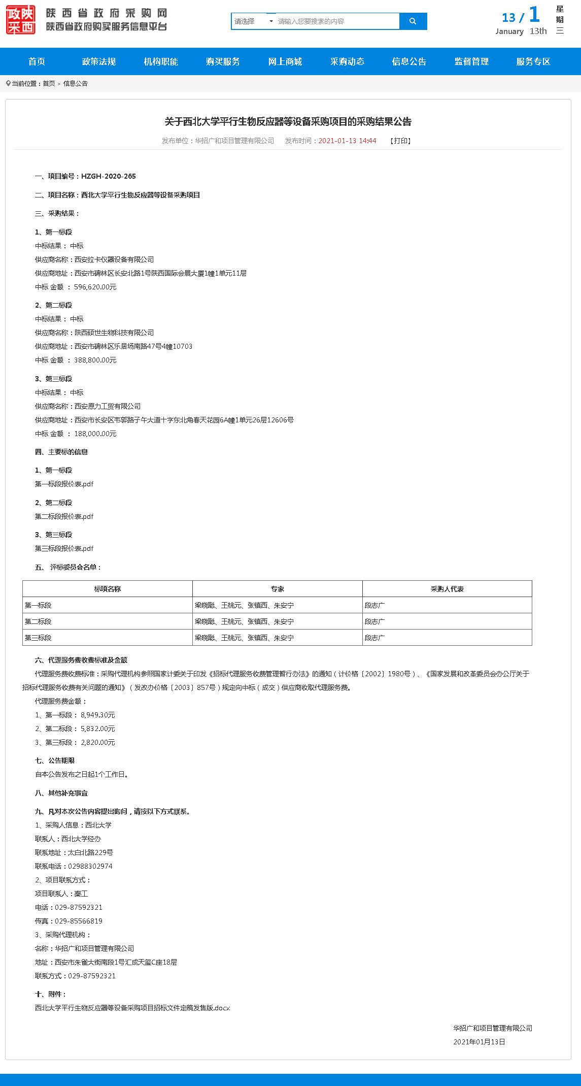 关于必赢3003no1线路检测中心平行生物反应器等设备采购项目的采购结果公告