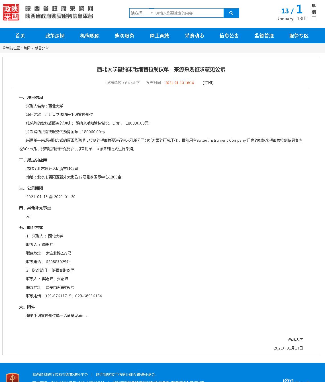 必赢3003no1线路检测中心微纳米毛细管拉制仪单一来源采购征求意见公示
