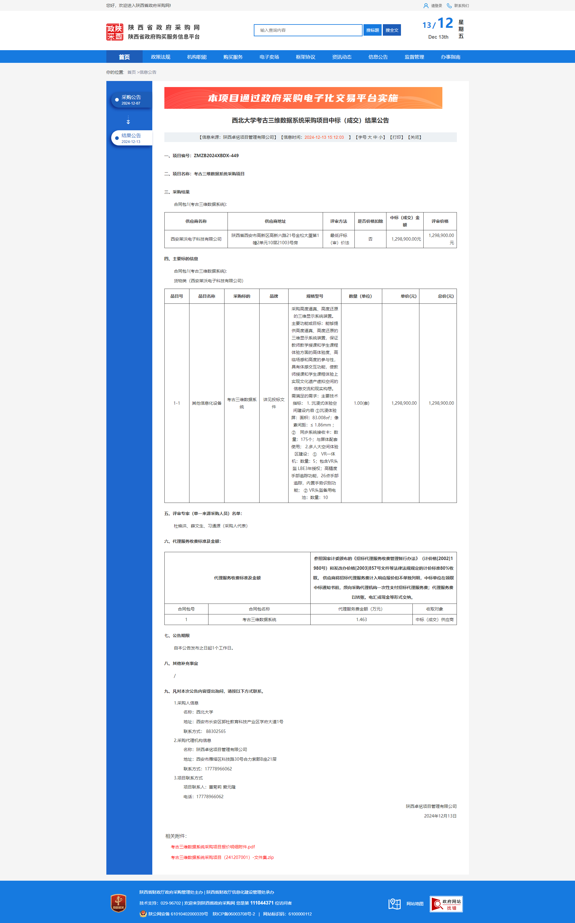必赢3003no1线路检测中心考古三维数据系统采购项目中标(成交)结果公告