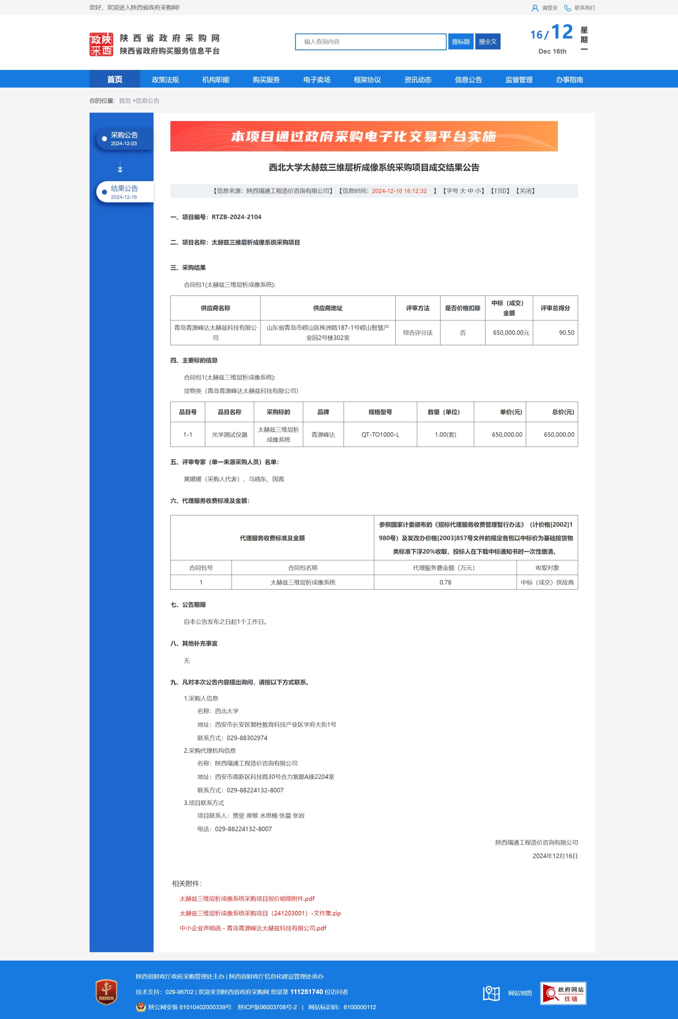 必赢3003no1线路检测中心太赫兹三维层析成像系统采购项目成交结果公告 作者: 编辑:薛利娟 时间:2024-12-16 原公告链接:https://www.ccgp-shaanxi.gov.cn/freecms/site/shaanxi/ggxx/info/2024/8a69c5a59218576d0193ceecb68d64d4.html?noticeType=001026¬iceId=e428ef29-bb97-11ef-8063-08c0eb20c666