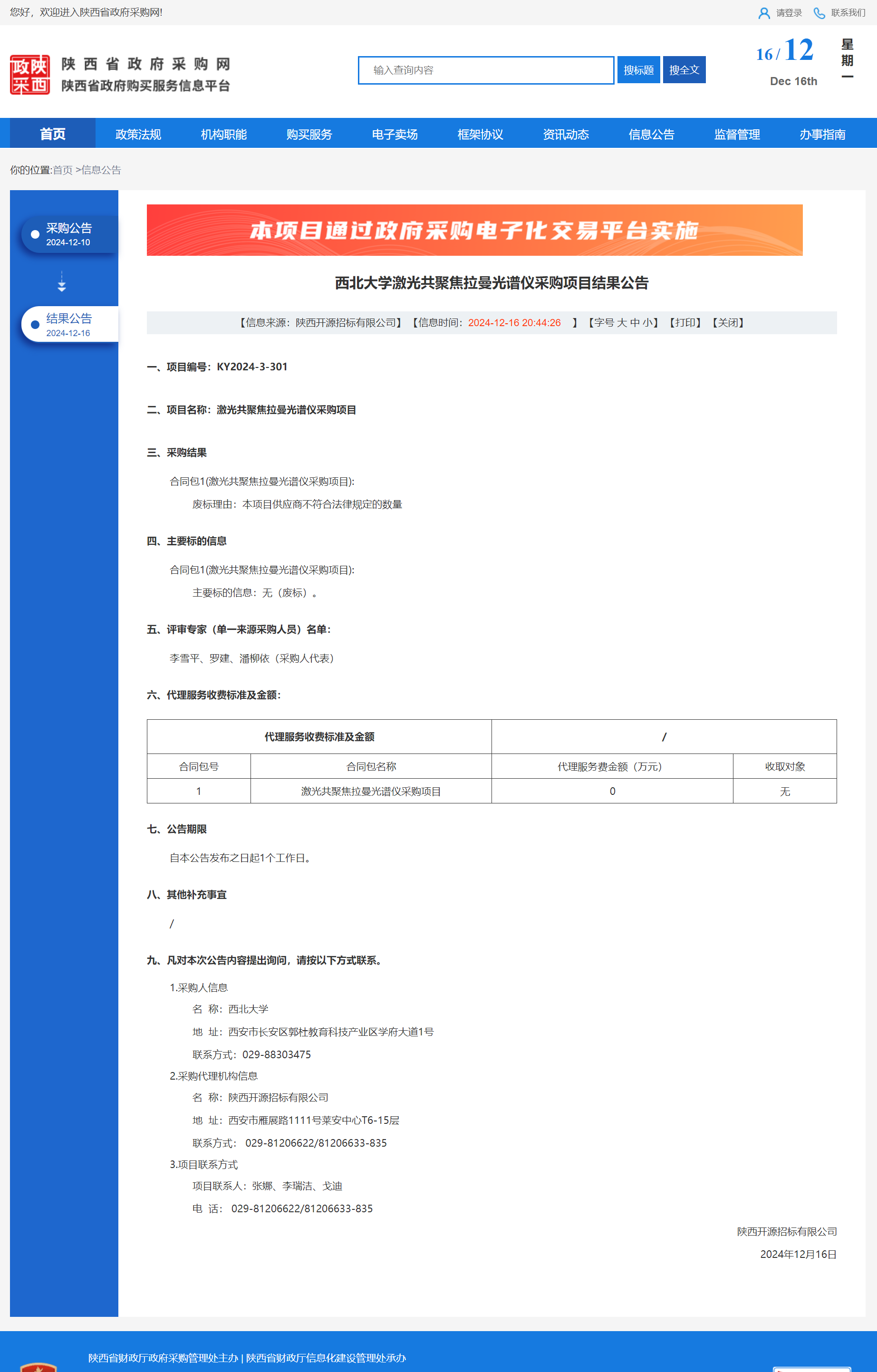 必赢3003no1线路检测中心激光共聚焦拉曼光谱仪采购项目结果公告 作者:采购与招标办公室 编辑: 时间:2024-12-16 原公告链接:https://www.ccgp-shaanxi.gov.cn/freecms/site/shaanxi/ggxx/info/2024/8a69c5a59218576d0193cf7935a32c29.html?noticeType=001006¬iceId=1c92edd7-bbad-11ef-8063-08c0eb20c666