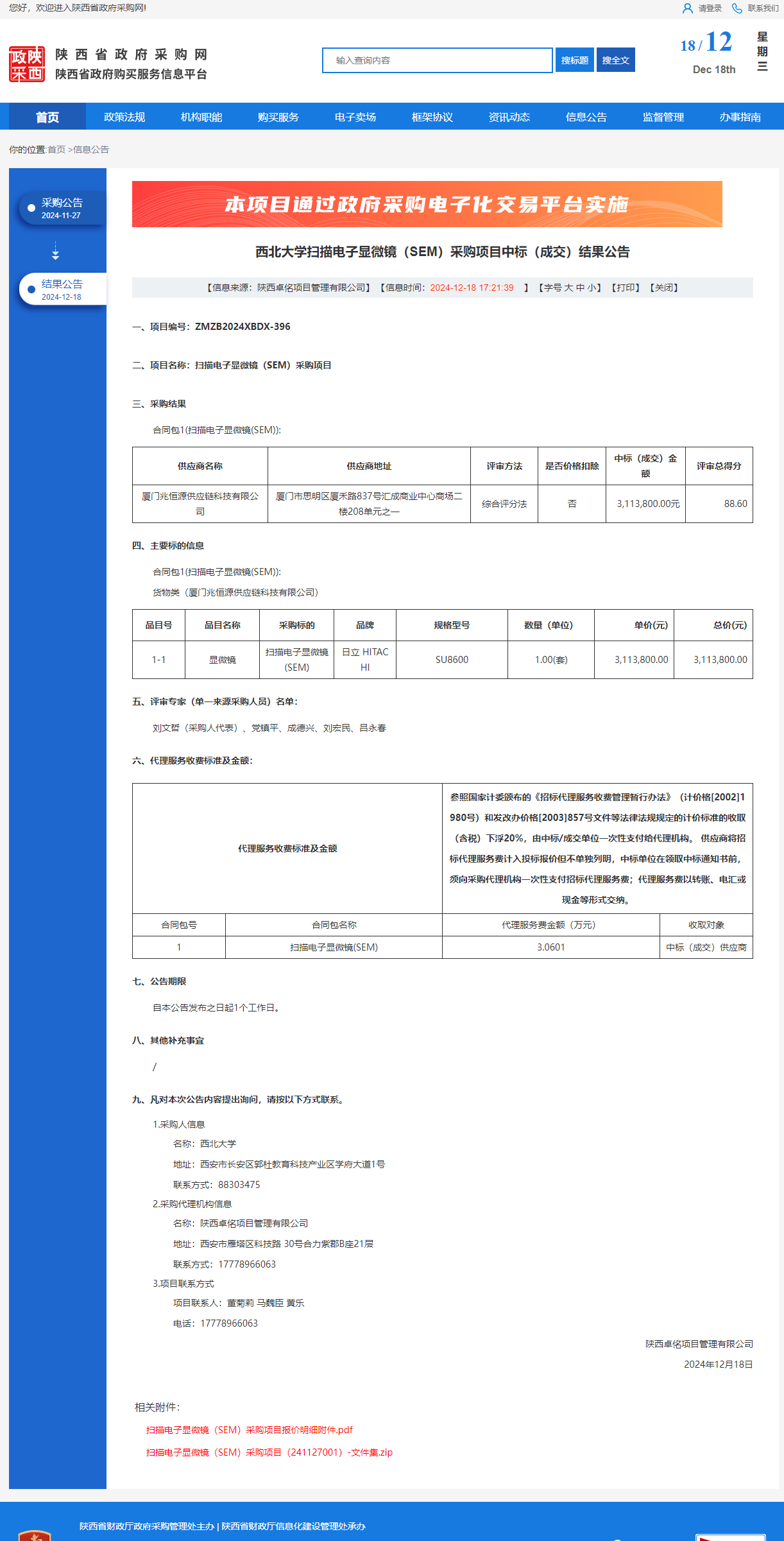 必赢3003no1线路检测中心扫描电子显微镜(SEM)采购项目中标(成交)结果公告 作者:采购与招标办公室 编辑: 时间:2024-12-18 原公告链接:https://www.ccgp-shaanxi.gov.cn/freecms/site/shaanxi/ggxx/info/2024/8a69c95d921859f00193d90183470ad8.html?noticeType=001021¬iceId=1e709926-bd23-11ef-8063-08c0eb20c666