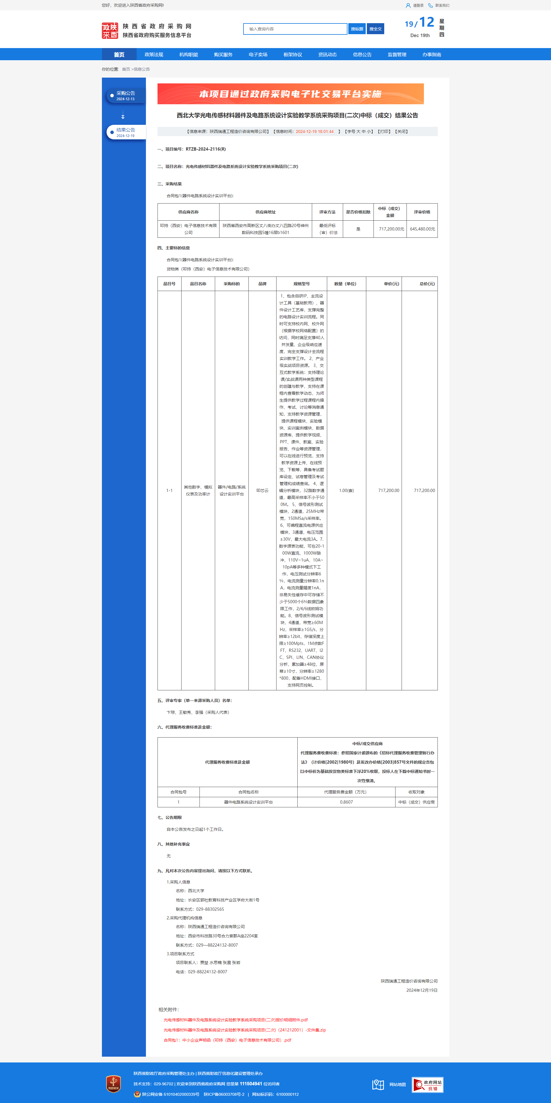 必赢3003no1线路检测中心光电传感材料器件及电路系统设计实验教学系统采购项目(二次)中标(成交)结果公告