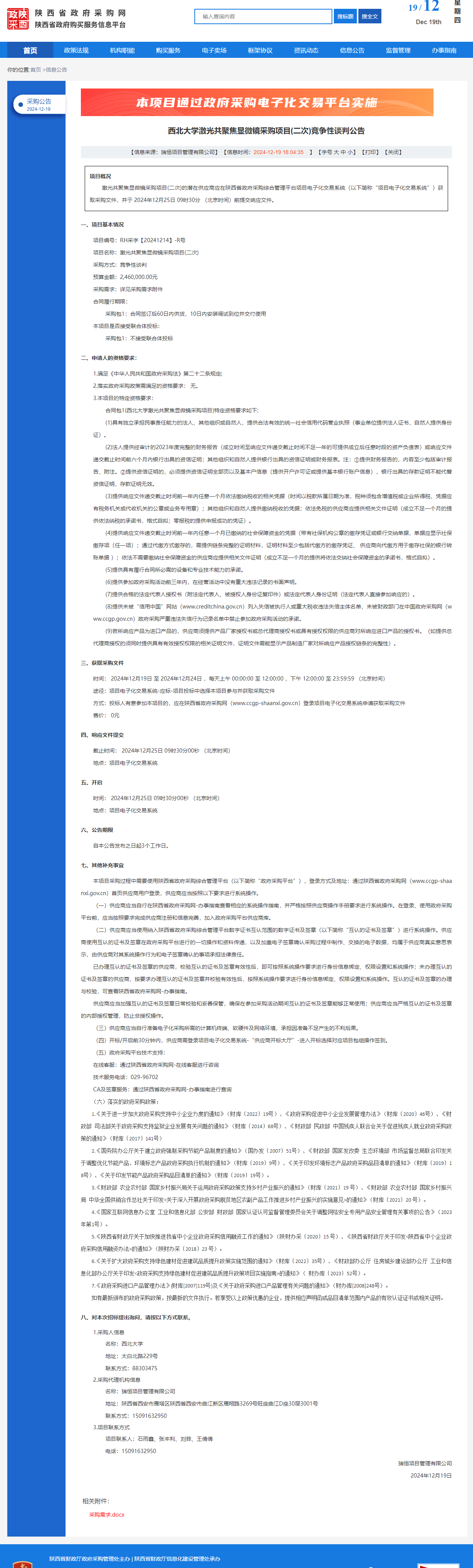必赢3003no1线路检测中心激光共聚焦显微镜采购项目(二次)竞争性谈判公告 作者:采购与招标办公室 编辑: 时间:2024-12-19 原公告链接:https://www.ccgp-shaanxi.gov.cn/freecms/site/shaanxi/ggxx/info/2024/8a69c95d921859f00193de53a768668a.html?noticeType=001013¬iceId=48e33407-bdf2-11ef-8063-08c0eb20c666