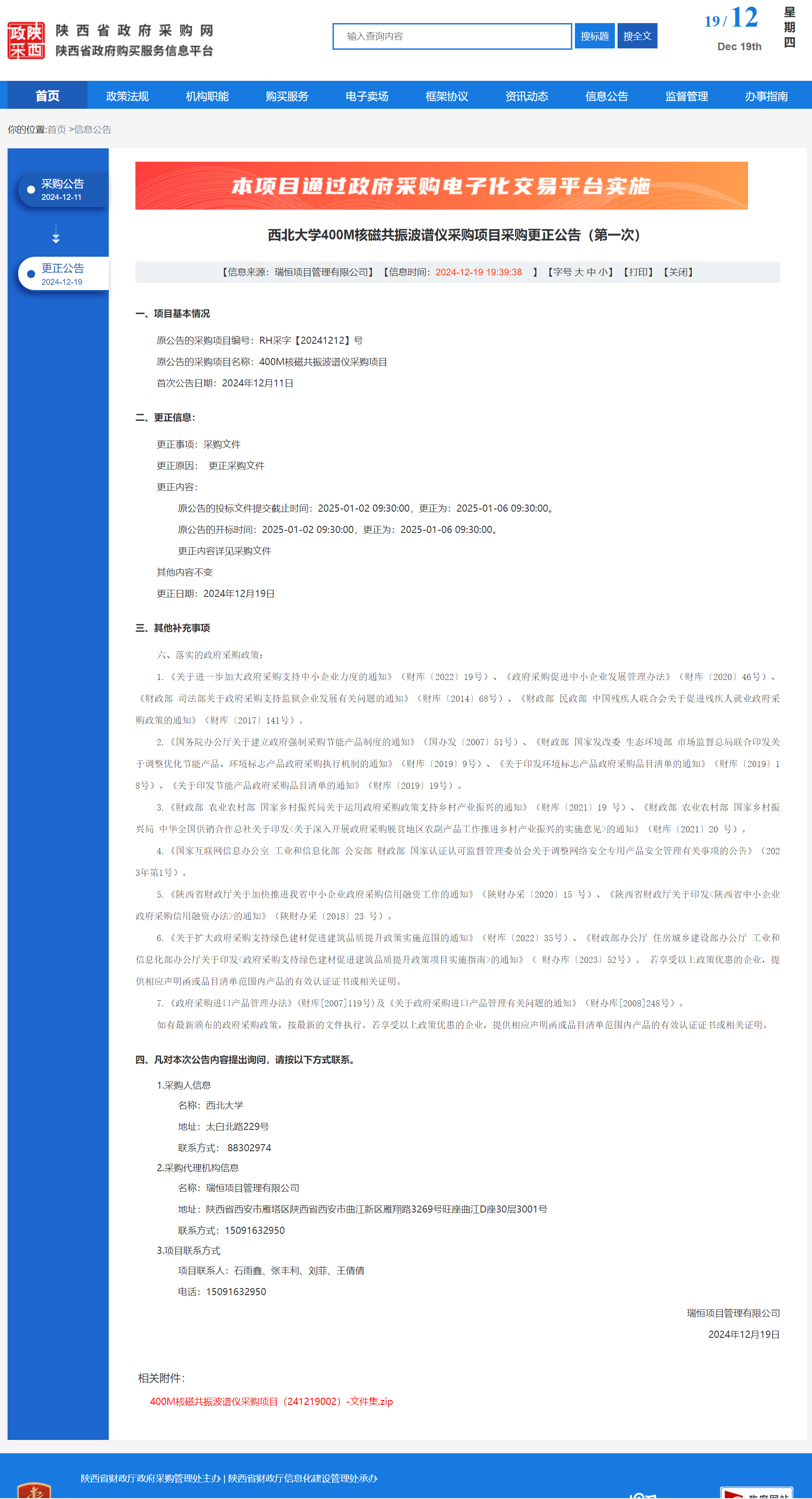 必赢3003no1线路检测中心400M核磁共振波谱仪采购项目采购更正公告(第一次) 作者:采购与招标办公室 编辑: 时间:2024-12-19 原公告链接:https://www.ccgp-shaanxi.gov.cn/freecms/site/shaanxi/ggxx/info/2024/8a69c44e9218572b0193dea841d35edb.html?noticeType=001031¬iceId=90038807-bdff-11ef-8063-08c0eb20c666