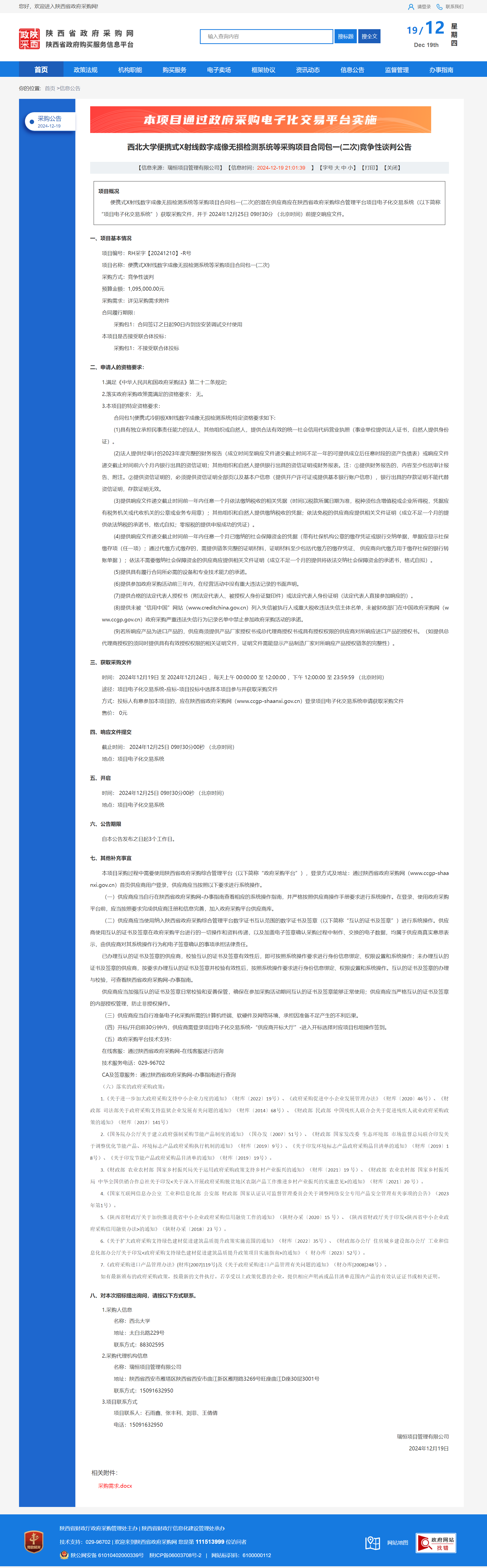 必赢3003no1线路检测中心便携式X射线数字成像无损检测系统等采购项目合同包一(二次)竞争性谈判公告