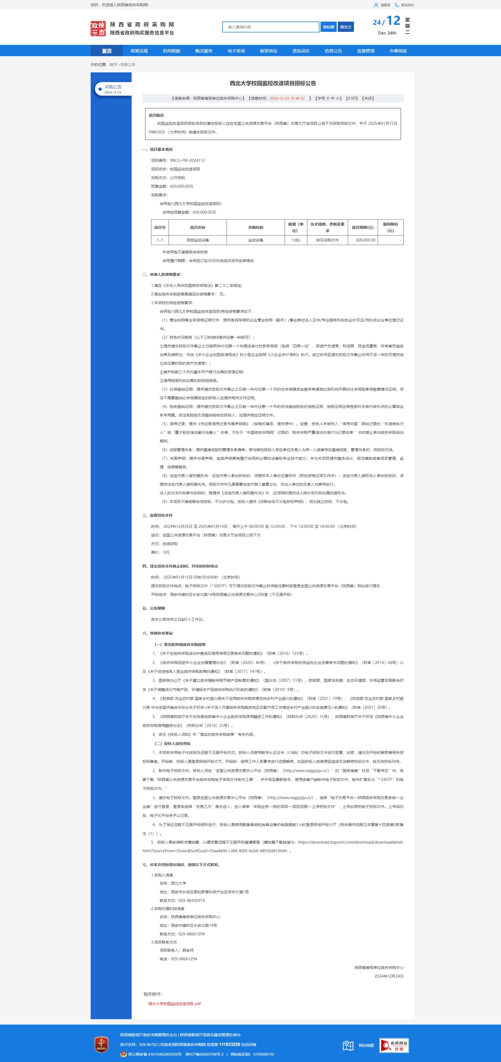 必赢3003no1线路检测中心校园监控改造项目招标公告 作者: 编辑:薛利娟 时间:2024-12-24 原公告链接:https://www.ccgp-shaanxi.gov.cn/freecms/site/shaanxi/ggxx/info/2024/8a69c95d921859f00193f765d16522d0.html?noticeType=001011¬iceId=d06e0e57-c1cc-11ef-8063-08c0eb20c666