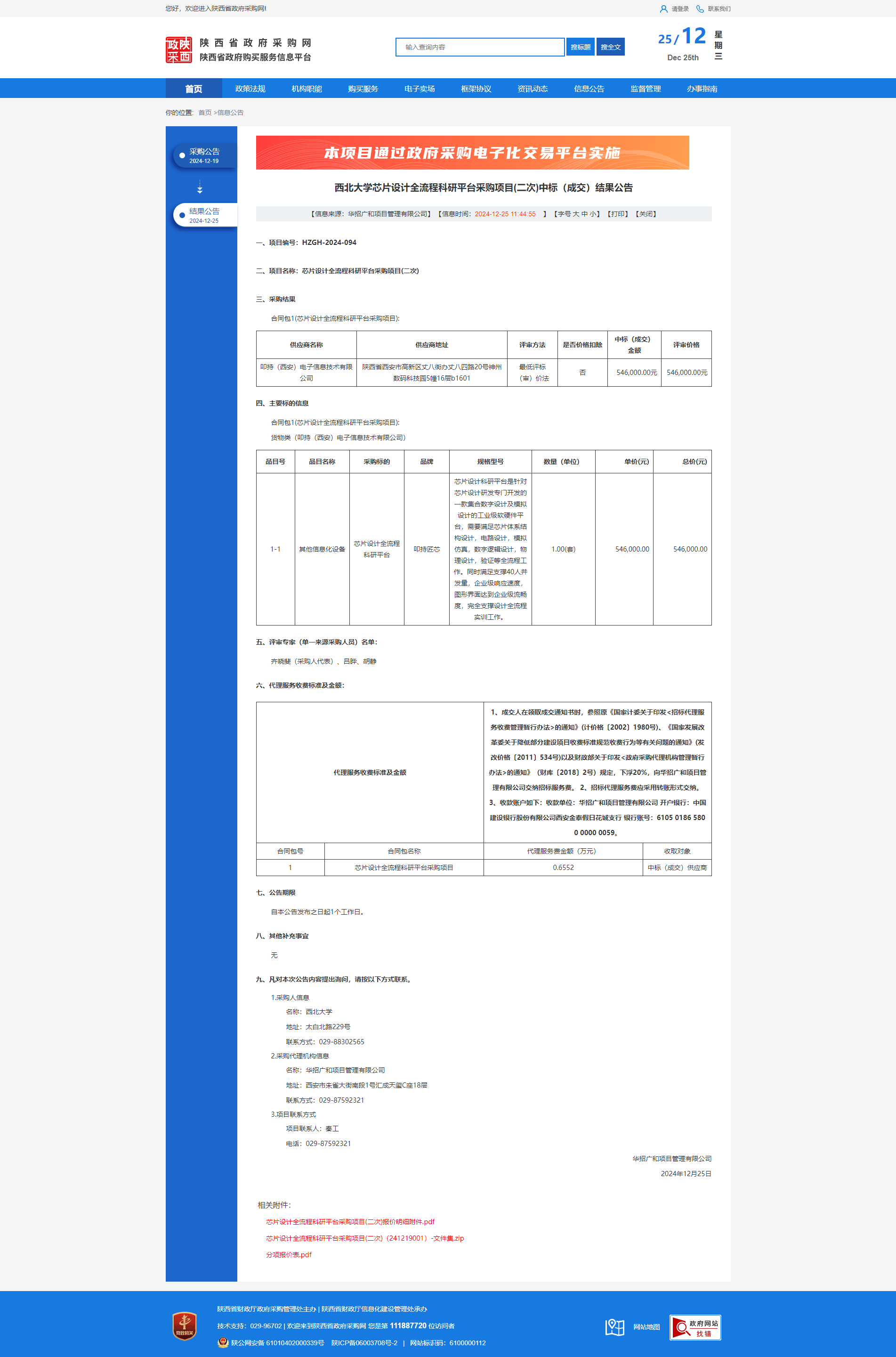 必赢3003no1线路检测中心芯片设计全流程科研平台采购项目(二次)中标(成交)结果公告