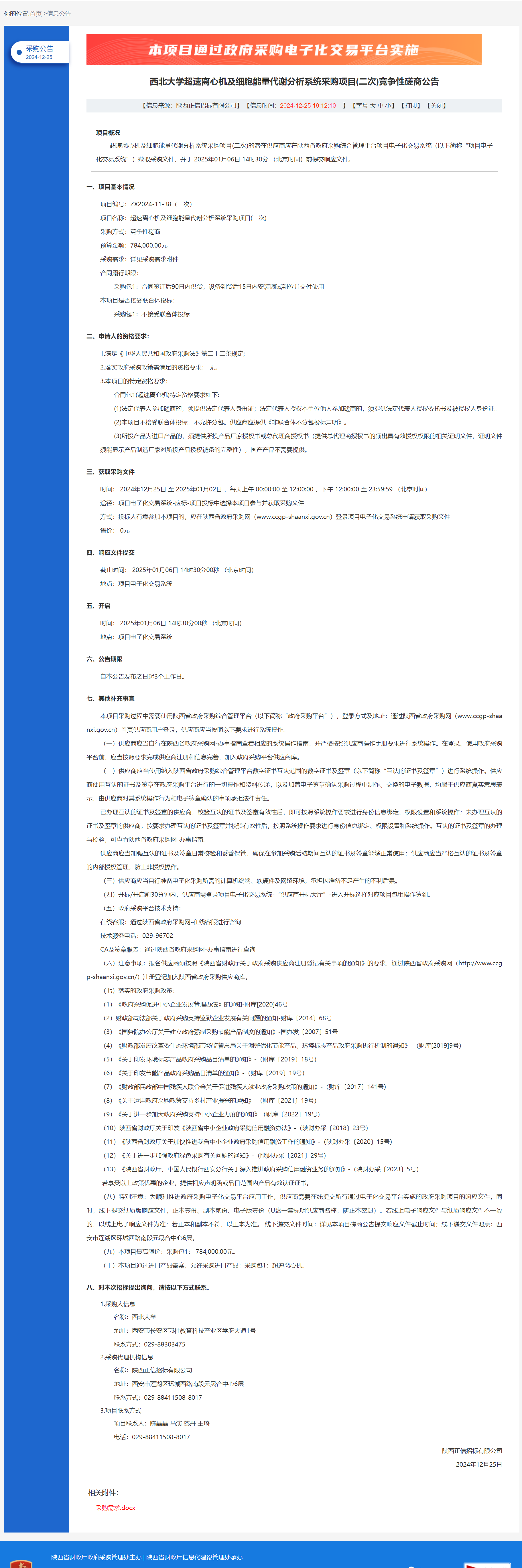 必赢3003no1线路检测中心超速离心机及细胞能量代谢分析系统采购项目(二次)竞争性磋商公告 作者:采购与招标办公室 编辑: 时间:2024-12-25 原公告链接:https://www.ccgp-shaanxi.gov.cn/freecms/site/shaanxi/ggxx/info/2024/8a69c44e9218572b0193fd6e7f5f4622.html?noticeType=001016¬iceId=bb6eaae2-c2b2-11ef-8063-08c0eb20c666
