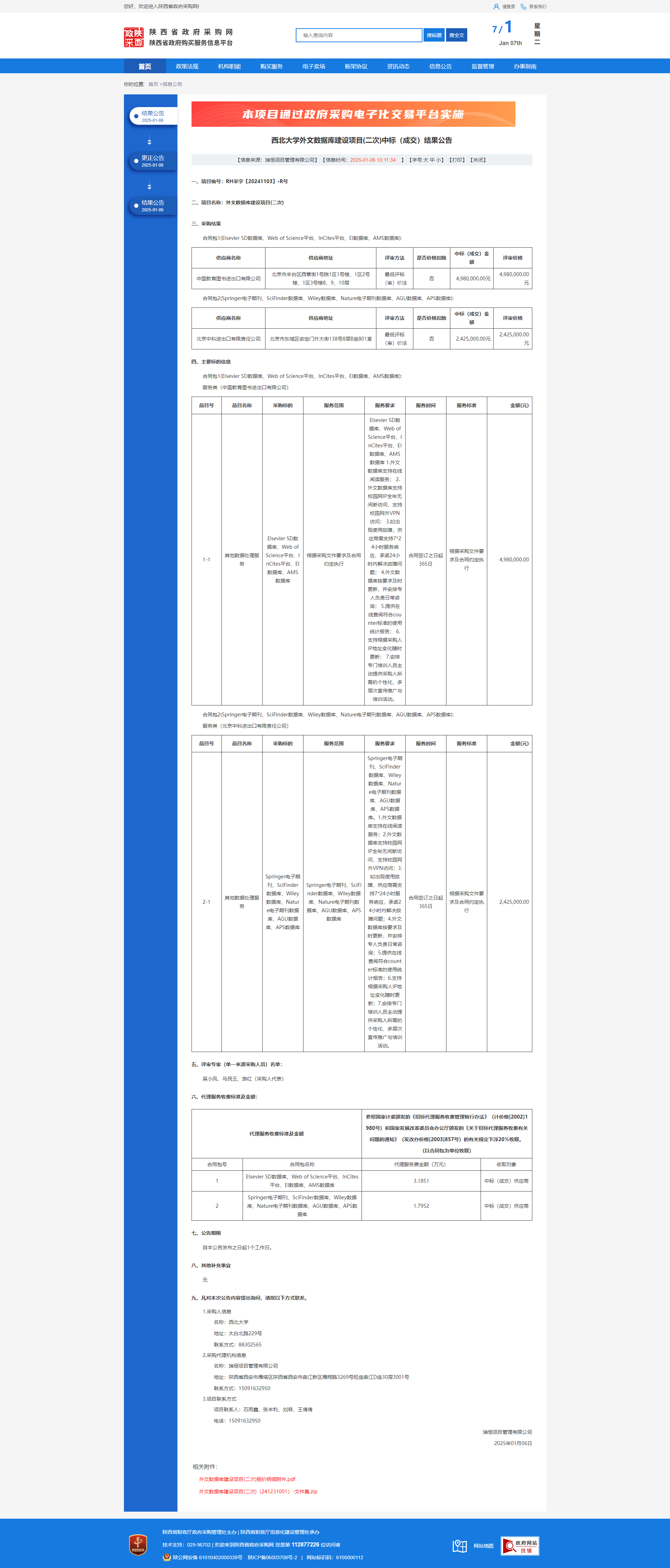 必赢3003no1线路检测中心外文数据库建设项目(二次)中标(成交)结果公告