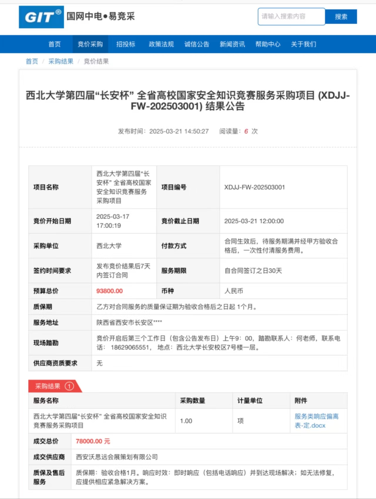必赢3003no1线路检测中心第四届“长安杯” 全省高校国家安全知识竞赛服务采购项目 (XDJJ-FW-202503001) 竞价结果公告 作者: 编辑:党丹珩 时间:2025-03-21 原链接地址:https://www.ejingcai.com.cn/site/bidding/detail/17086