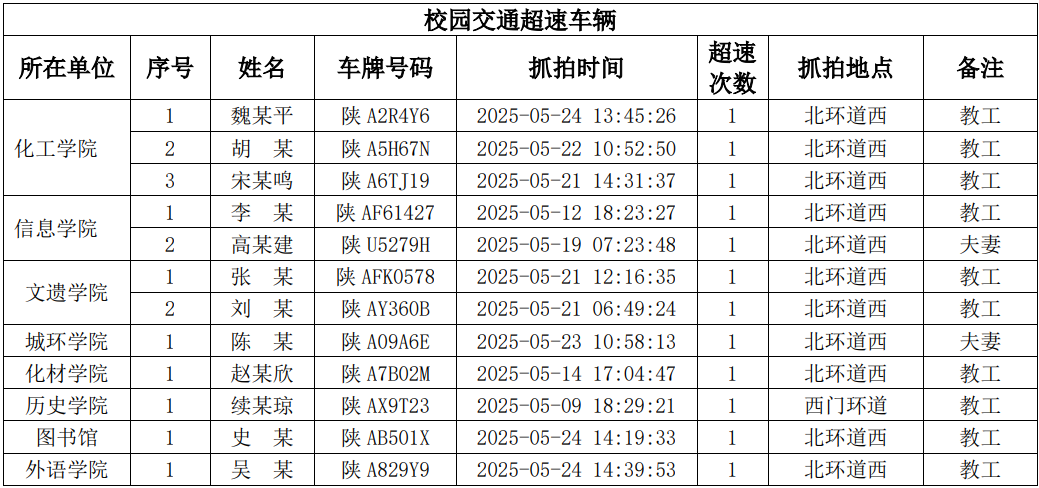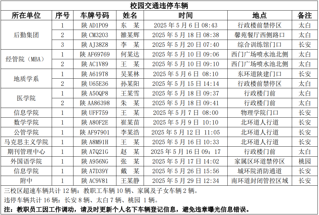 为进一步加强校园交通管理,保障校园交通安全有序,维护学校正常的教学、科研和生活秩序,切实保护师生员工的人身财产安全,根据《必赢3003no1线路检测中心校园交通安全管理规定》的相关要求,现将2025年5月校园交通违章车辆予以曝光,具体要求与违章信息如下: