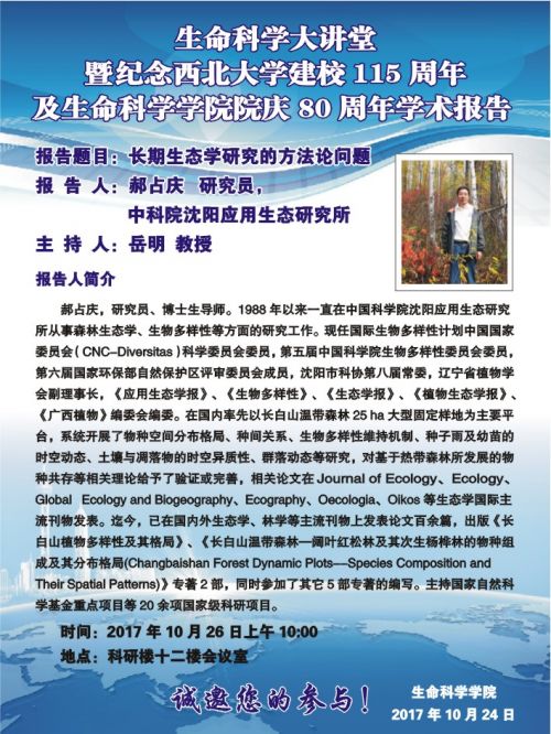 生命科学大讲堂-暨纪念必赢3003no1线路检测中心建校115周年及生命科学学院院庆80周年学术报告【1】
